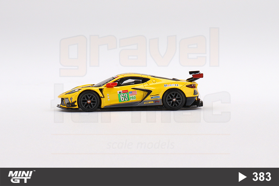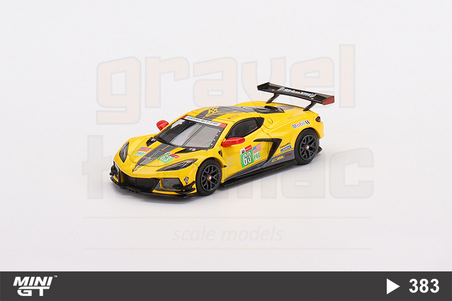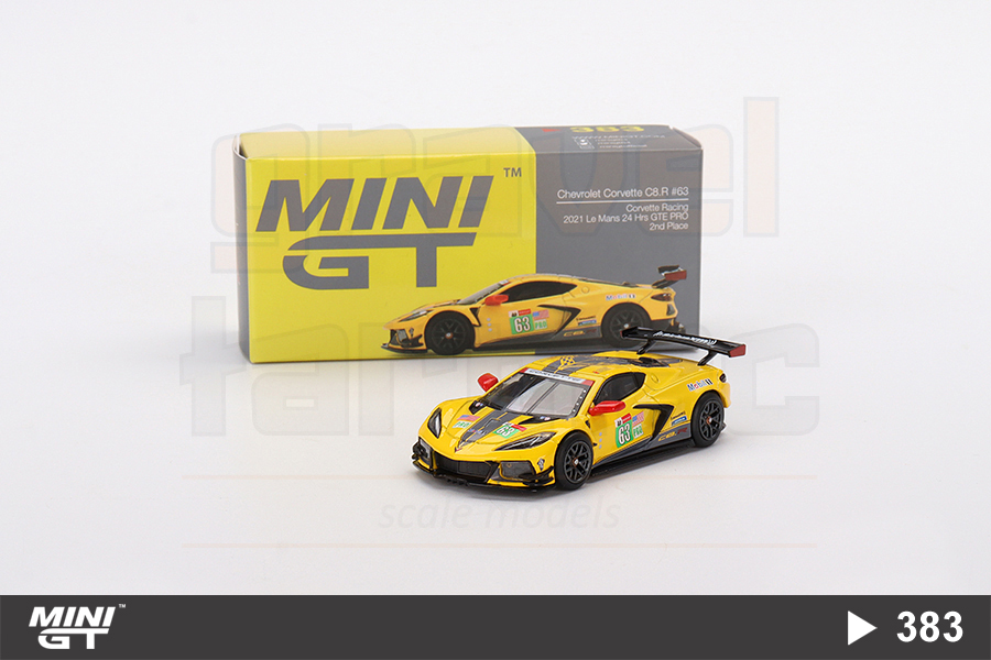 2021 Le Mans 24 Saat Yarışı’nda GTE PRO sınıfı ikinciliğini kazanan Corvette Racing takımının 63 kapı numaralı Chevrolet Corvette C8.R aracının 1/64 ölçekli Mini GT üretimi MGT00383 numaralı modeli.