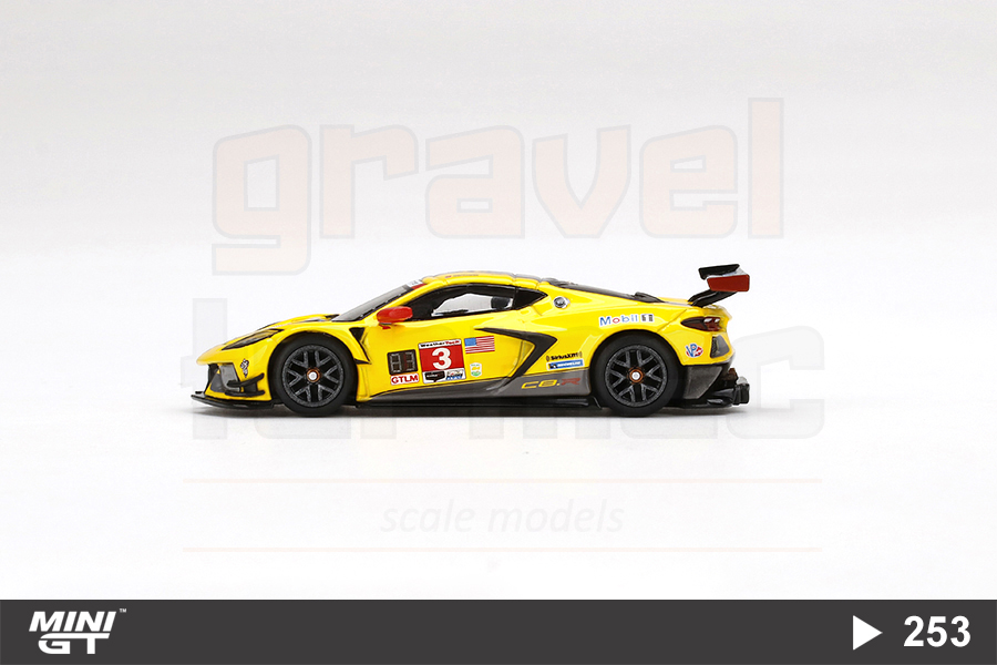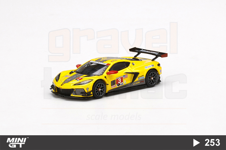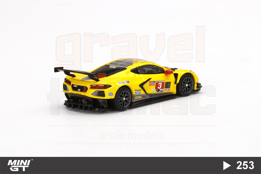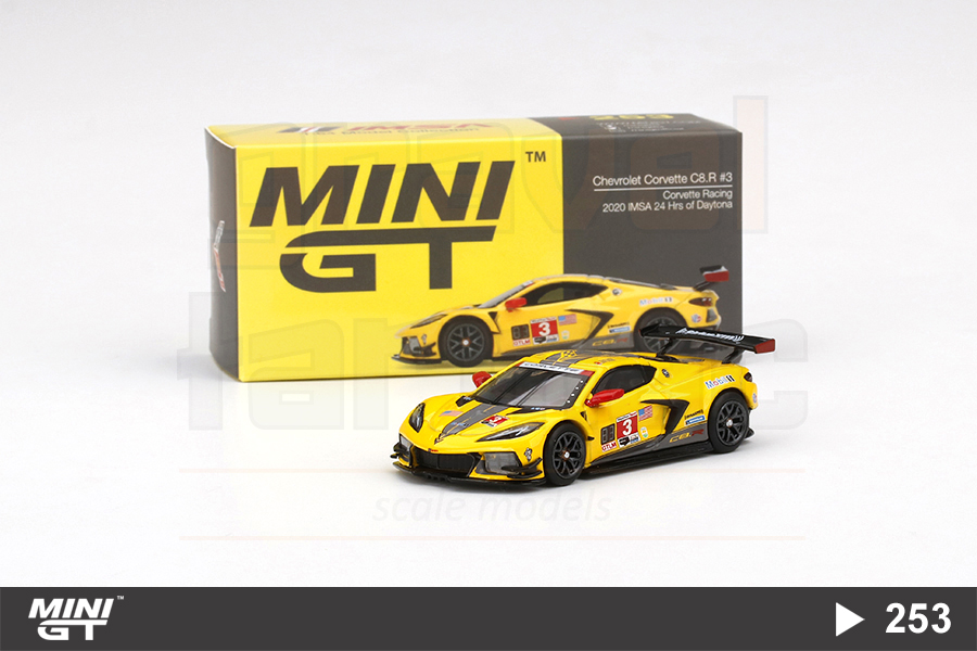 2020 yılında IMSA 24 Hrs of Daytona yarışına katılan Corvette Racing takımının 3 kapı numaralı Chevrolet Corvette C8.R aracının 1/64 ölçekli Mini GT üretimi MGT00253 numaralı modeli.