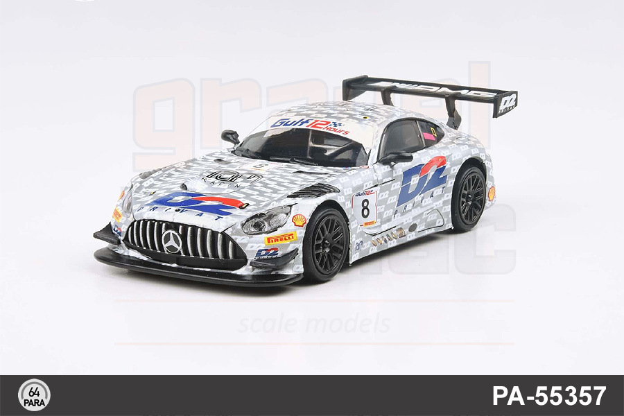 2022 yılında Gulf 12Hr yarışına katılan Ram Racing takımının 8 kapı numaralı Mercedes AMG GT3 Evo aracının 1/64 ölçekli Para64 üretimi PA-55357 numaralı modeli.