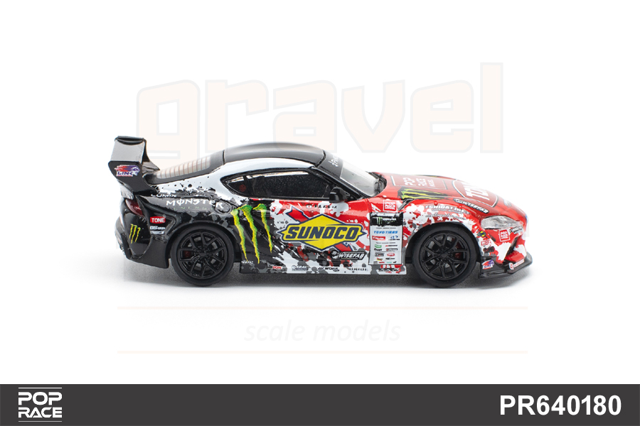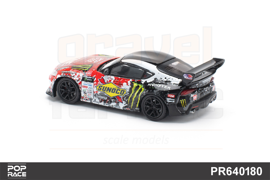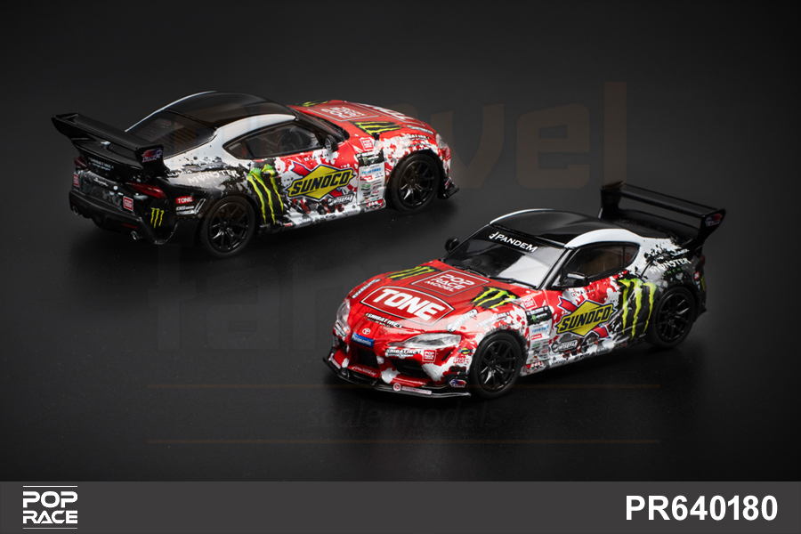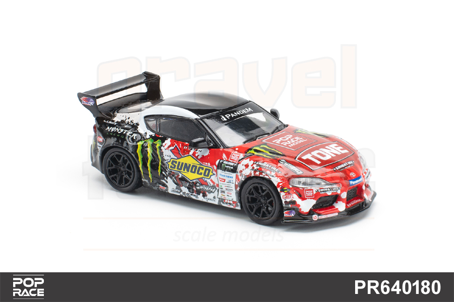 Daigo Saito tarafından D1GP 2024’te kullanılan Pandem GR Supra drift aracının 1/64 ölçekli Pop Race üretimi PR640180 numaralı modeli.