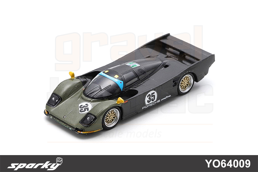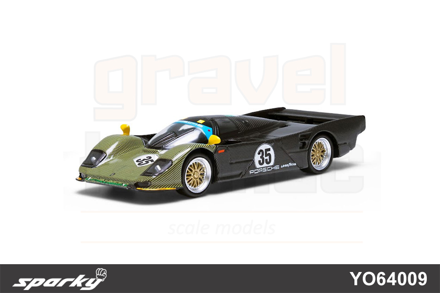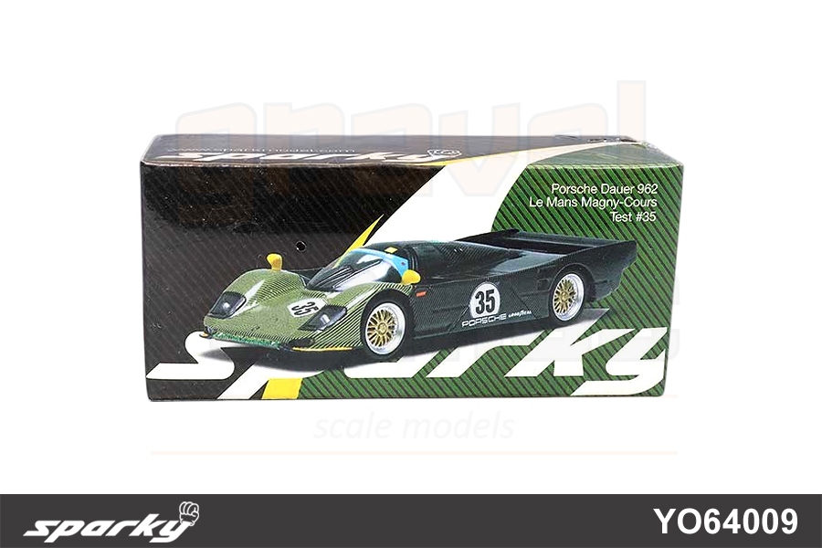 Porsche Dauer 962 Le Mans modelinin 35 kapı numaralı test aracının 1/64 ölçekli Sparky üretimi YO64009 numaralı modeli.